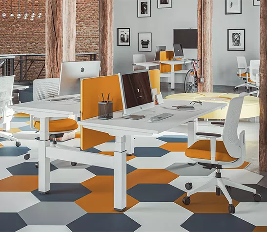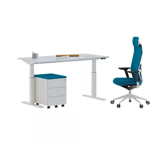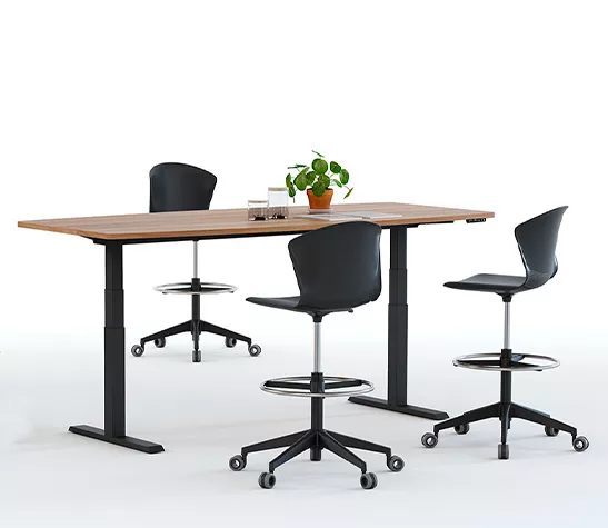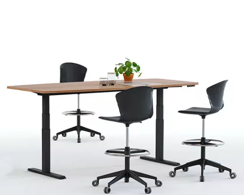 Mobility est un programme de tables réglables en hauteur, grâce à des systèmes de réglages électronique, mécanique et à manivelle.