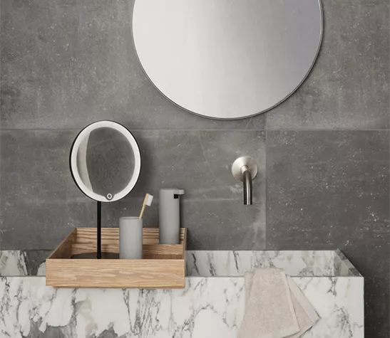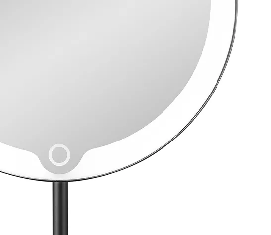 Le grossissement 5 fois et la surface de miroir pivotante et amovible à 360° offrent les meilleures conditions pour cela. L’anneau lumineux à LED est activé via un élément de commande intuitif et peut ensuite être sélectionné parmi 3 couleurs de lumière différentes selon les besoins. De plus, différentes intensités lumineuses peuvent être réglées à l’aide de la fonction de gradation. Le miroir, conçu par Nina Thöming (Flöz Design), est mobile grâce à sa batterie rechargeable intégrée. Si la batterie est déchargée, une recharge rapide est garantie avec le câble USB-C inclus.