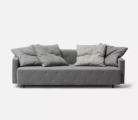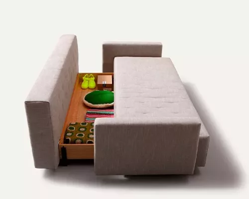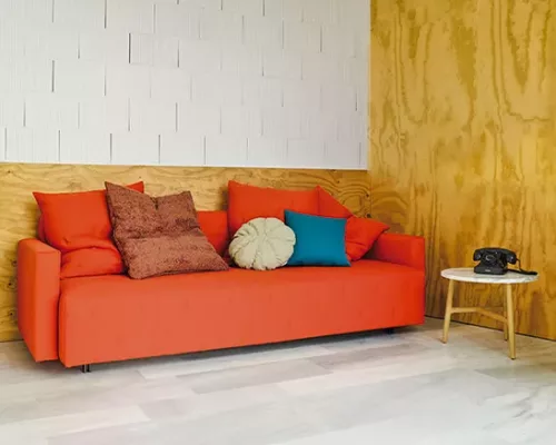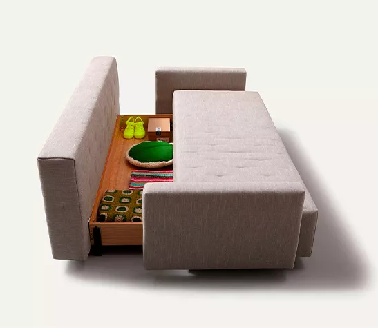 Le Nap est un nouveau canapé-lit de Rafa García. Les détails matelassés sont inspirés des anciens matelas en laine. Le canapé se transforme en lit en deux mouvements seulement, et vice versa. Un petit compartiment caché sous la structure est idéal pour ranger à l'abri des regards les vêtements et les coussins du lit.