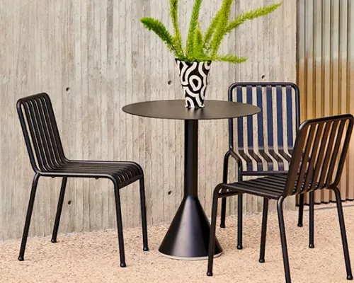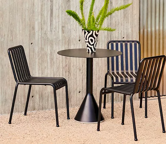Palissade Chair fait partie de la collection de mobilier d’extérieur Palissade conçue par Ronan et Erwan Bouroullec pour HAY