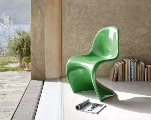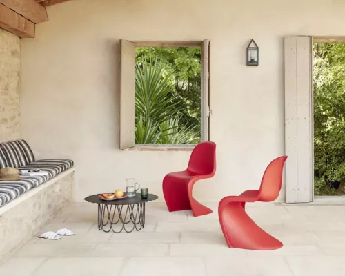 Conçue par Verner Panton en 1959, la Panton chair a été développée pour la production en série en collaboration avec Vitra (1967).