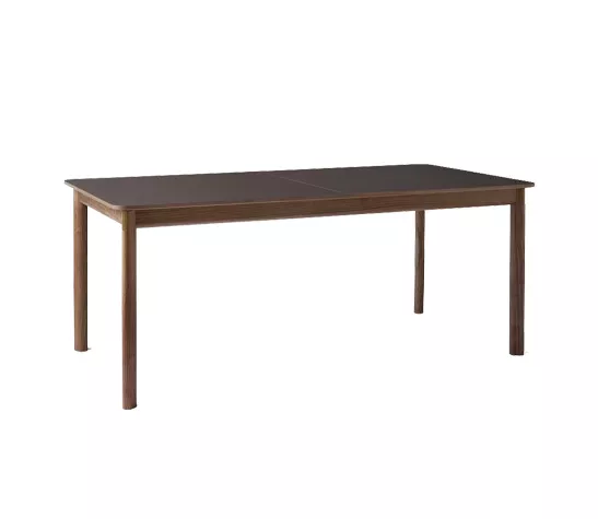 Son piètement en bois est surmonté d’un plateau en stratifié lisse. Les pieds en forme de goutte d’eau et les coins arrondis ajoutent des détails de design subtils, tout comme les pièces métalliques sur chaque pied qui maintiennent la table solidement assemblée. La table est disponible en deux tailles : 180 x 90cm, ou 240 x 100cm et sont toutes deux extensibles de 100cm.