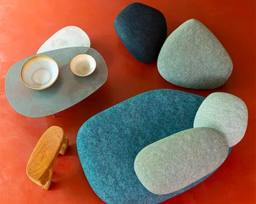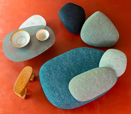 Le système Pebble Rubble créé par le duo de designer Studio Front pour Moroso, exprime avant tout une expérience sensorielle. Une agréable illusion qui nous attire et nous intrigue, modifiant non seulement nos sens mais aussi notre perception du temps : celui de la vie quotidienne, rapide et frénétique et celui de la nature, lent et insondable.