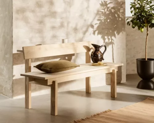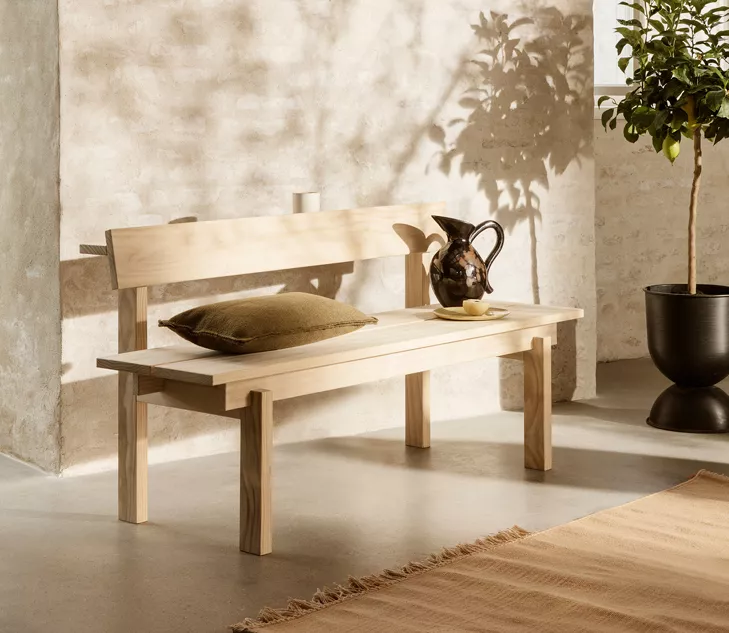 Le banc Peka allie des lignes droites et rigoureuses à un design pur et contemporain, tout en conservant la douceur et l'authenticité d'un bois clair aux veines délicates.
