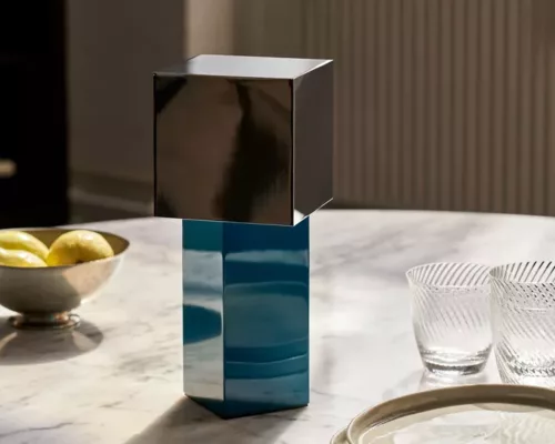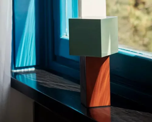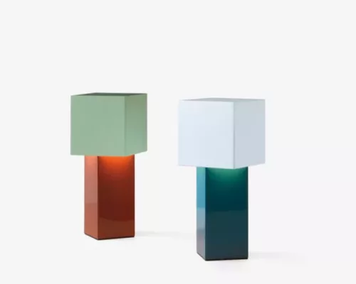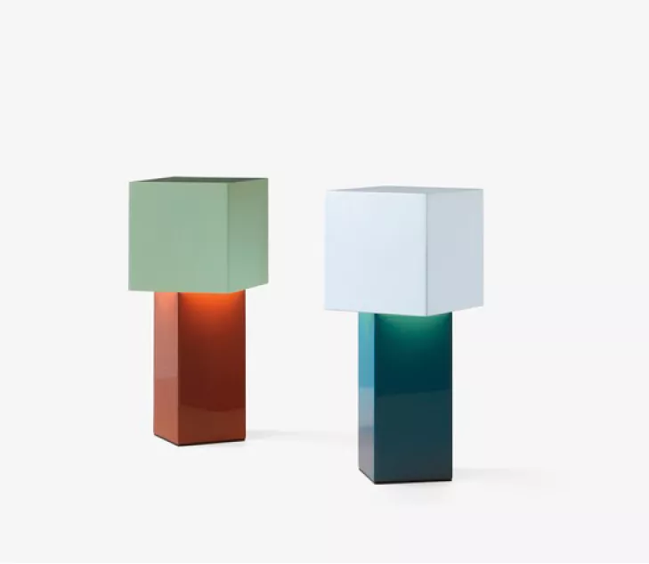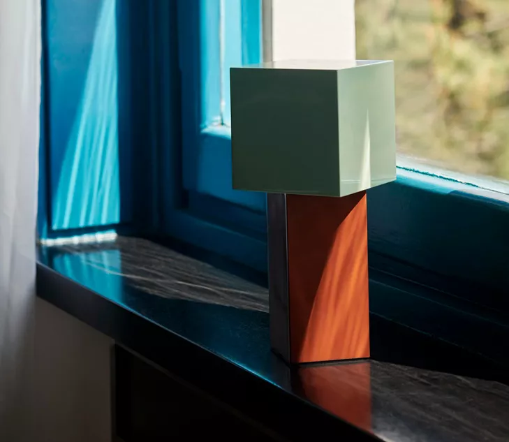 La lampe revêt deux apparences distinctes le jour et la nuit. Exposée à la lumièredu jour, la forme cubique de la lampe Pivot et les véritables couleurs des blocs occupent le devant de la scène, comme une œuvre d’art ; le soir, Pivot incarne son rôle de luminaire, la lumière glisse vers le bas depuis l’abat-jour décentré, en altérant délicatement la couleur de la base.
