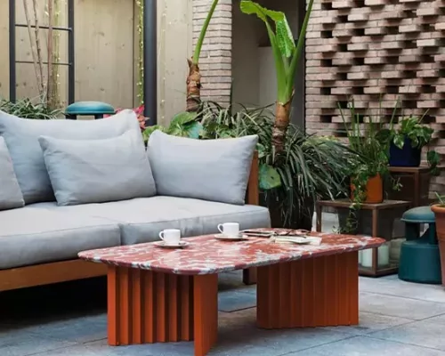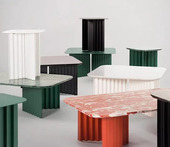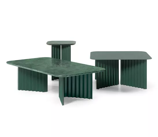 La collection de tables Plec s'intègre avec élégance dans tous les cadres et espaces, que ce soit comme table basse devant le canapé, comme table d'angle dans une réception ou une salle d'attente, ou dans votre jardin entouré de plantes et de fleurs.