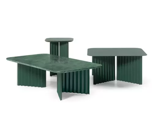 Plec est une collection de tables d’appoint qui sont aussi heureuses ensemble que séparées. Avec leurs pieds en accordéon, les trois tables Plec (grande, moyenne et petite) aiment créer des effets d’ombre et de lumière à tout moment de la journée.