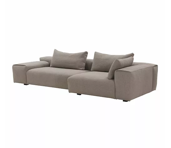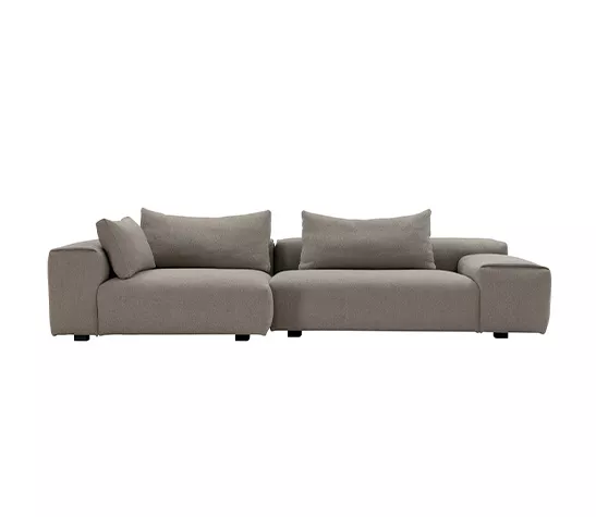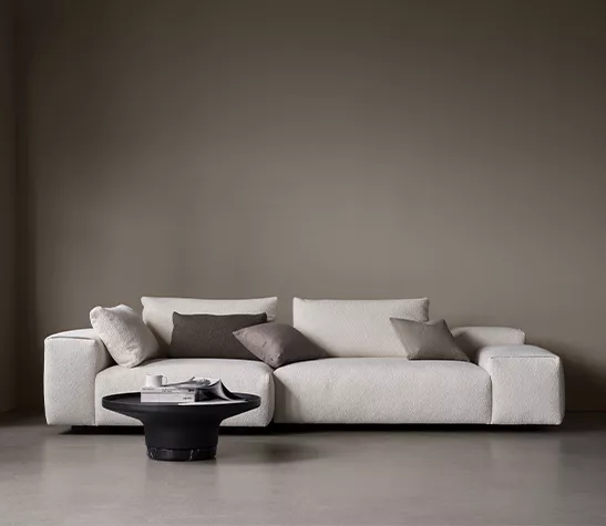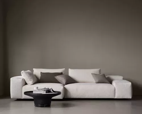 Conçu par 365° Nord, le canapé Pontone présente un design compact et généreux, avec ses accoudoirs larges et ses modules XL.