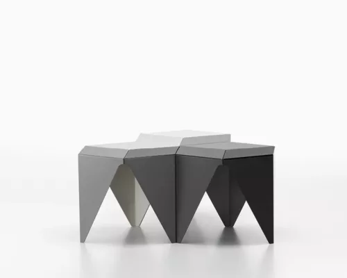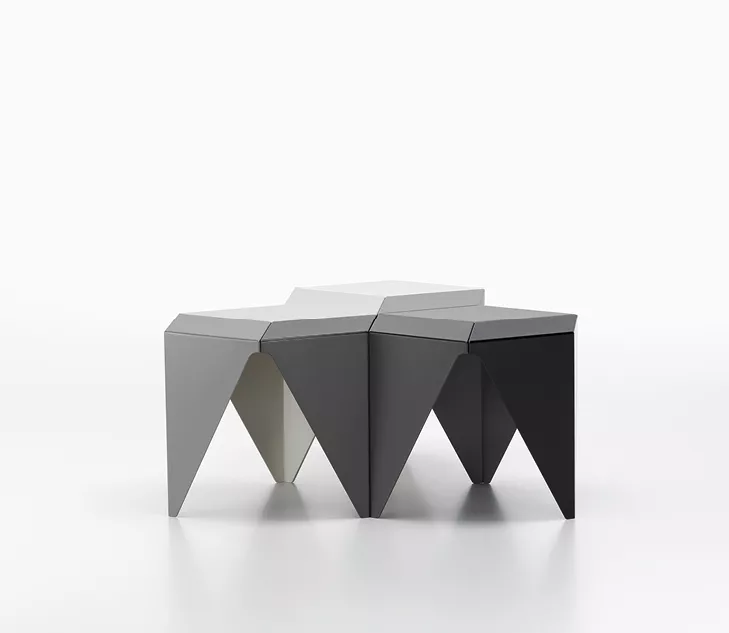 Comme l’avait prévu le designer Isami Noguchi à l’origine, Vitra produit la Prismatic Table en trois versions, dont les trois composant se déclinent en différentes nuances sobres de gris. Positionnées en groupes, les Prismatic Tables créent des motifs remarquables qui évoquent l’esthétique des kaléidoscopes.