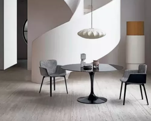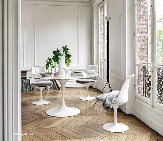 La collection de tables Saarinen ainsi que les chaises Tulip coordonnées, ont été créées en 1957 par Eero Saarinen, ce fut une révolution dans le monde du design.