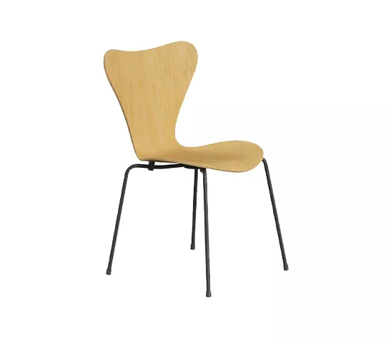 Légère et empilable, elle s’impose dans tous les espaces par sa forme douce et son confort. Sa structure chromée s’associe avec un siège en noyer, chêne, chêne foncé, ou frêne coloré. La Série 7 se décline également en version enfant.