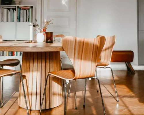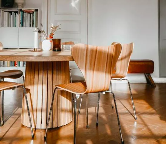 Visionnaire, Arne Jacobsen a exploité les possibilités du placage et moulage du bois déjà employé sur la chaise Fourmi en 1952, pour parvenir à la forme iconique de la Série 7.