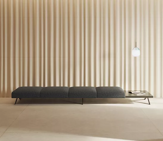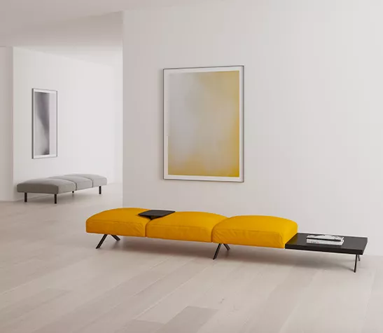 Pour créer votre propre banc Sistema, choisissez le nombre d'assises dont vous avez besoin et son revêtement (Smooth ou Soft), le type de pieds et ses accessoires (tables basses ou tablettes).