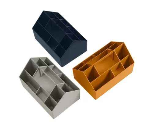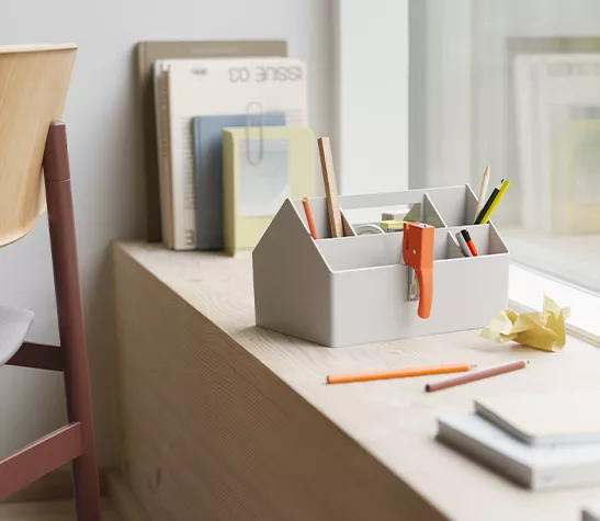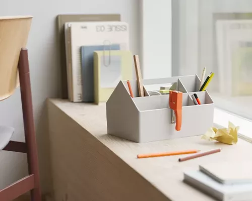 La boîte à outils Sketch est une petite pièce d’architecture conviviale pour le bureau, qui vous aide à organiser vos outils et objets. Inspirée par l’architecture simple des maisons, le design apporte fonctionnalité et polyvalence avec ses compartiments de différentes compartiments de différentes profondeurs, ainsi que la poignée, ce qui facilite son déplacement.