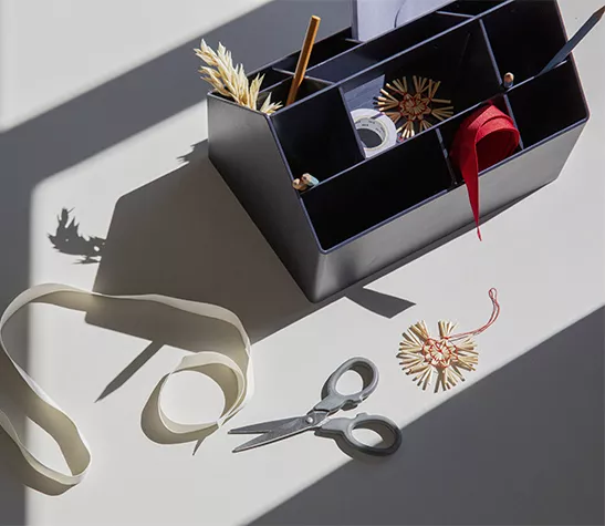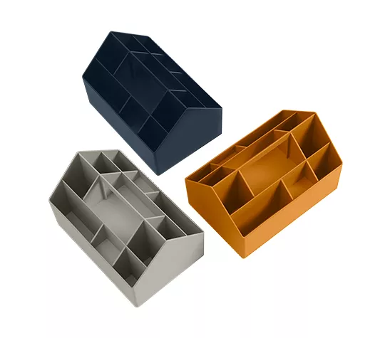 Fabriquée à partir de 91 % de plastique recyclé, la boîte à outils Sketch est un compagnon convivial pour la vie quotidienne, que ce soit à la maison ou à l’extérieur sur le lieu de travail, dans la salle de bain ou partout où vous avez besoin d’aide pour ranger vos affaires.