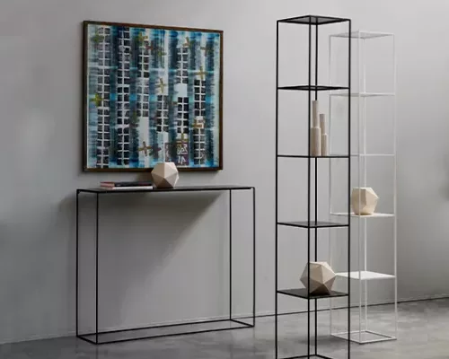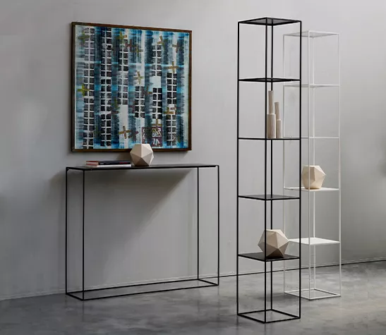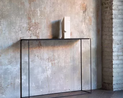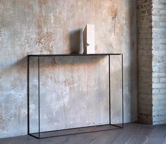 Très graphique, la console en métal Slim Irony se compose d'un plateau, relié par une structure fine en acier.