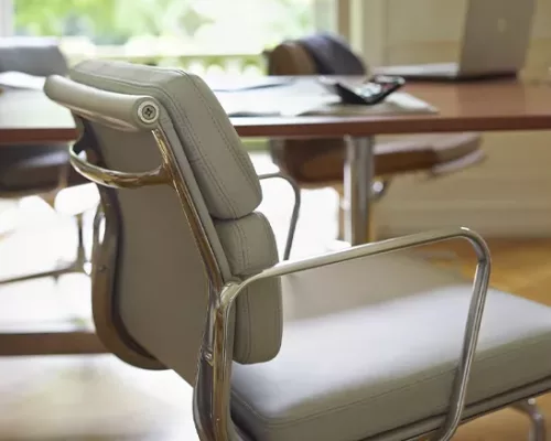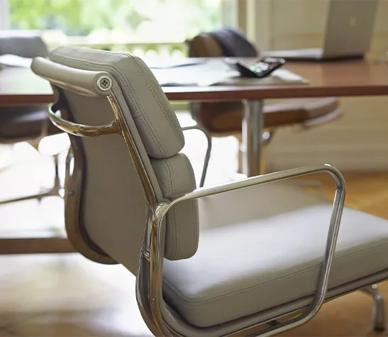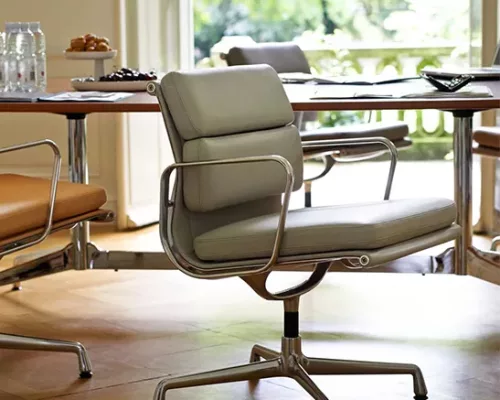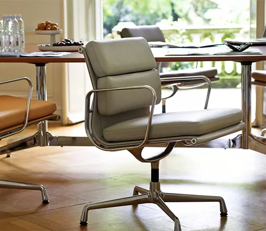 Les Soft Pad Chairs de Charles et Ray Eames s'adaptent parfaitement aux espaces de réunion et de conférence élégants.