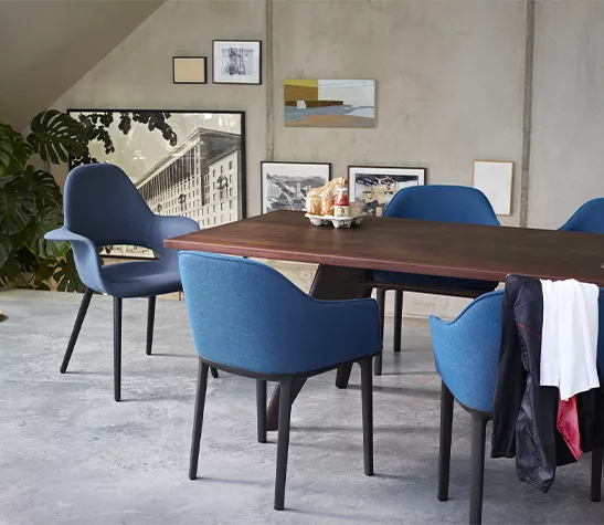Le Softshell Side Chair, dont les contours délicats sont définis par son rembourrage doux, offre un confort d’assise exceptionnel et des dimensions compactes.