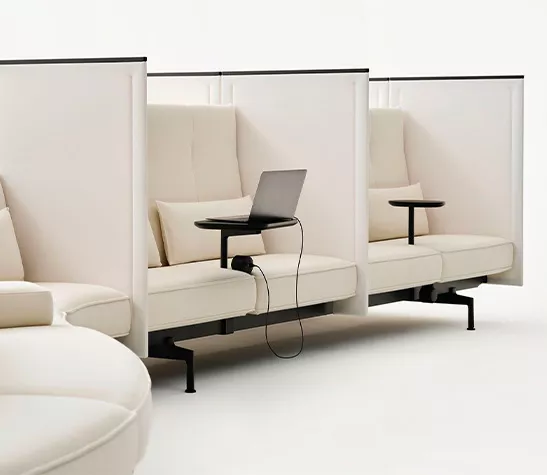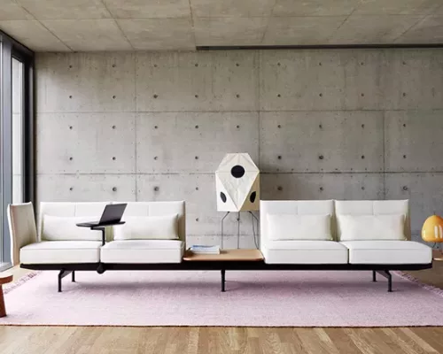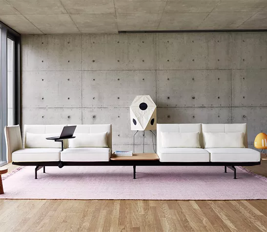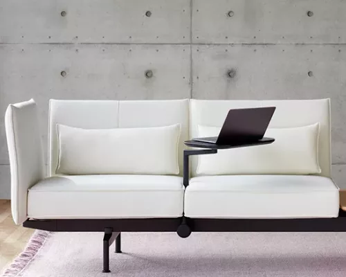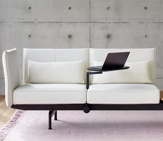 Le canapé est devenu un lieu de travail. C’est dans cet esprit que Vitra et les designers Edward Barber et Jay Osgerby ont développé le nouveau système Soft Work, en associant l’expertise des secteurs de l’habitat, du bureau et des espaces publics.