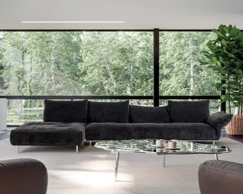 L’ « intelligence » du coussin constitue une véritable révolution en termes de détente et de bien-être. Elle modifie l’esthétique du canapé et donne vie à une diversité de conforts très variés et entièrement personnalisables. Qu’il soit dossier ou accoudoir, le coussin intelligent, grâce à ces mécanismes invisibles qui sont de véritables chefs-d’œuvre d’ingénierie, assure un maximum de bien-être et adhère à son concept de confort et de détente. Testé en simulant une utilisation continue sur plusieurs années, aucune usure sous contrainte n’est détectée : la fonctionnalité et la technologie s’unissent au service de la détente.