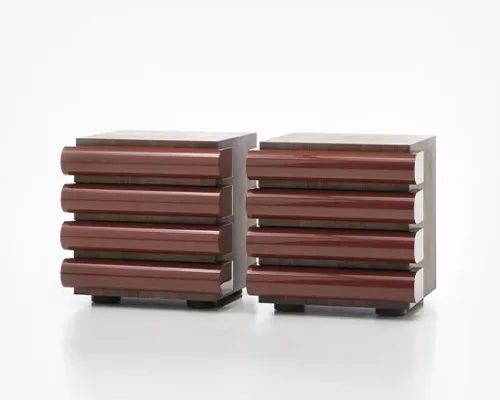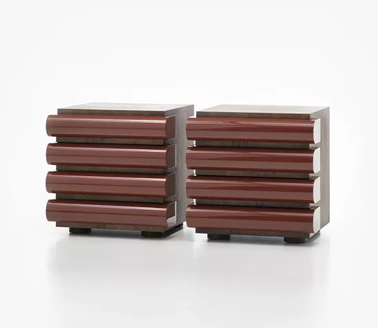 Tant dans sa version semainier que table de nuit, STORET est conçu par Nanda Vigo mais fabriquée pour la première fois seulement aujourd’hui. Le Storet reflète les avancées actuelles en matière de production, les veines visibles du noyer mettant en lumière le savoir-faire moderne d’Acerbis dans l’utilisation de surfaces de bois étendues.