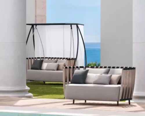 La collection iconique Swing est terminé un nouvel élément lounge, qui se veut un refuge protégé, quasi poétique, pour «habiter» la nature dans le plus grand confort.