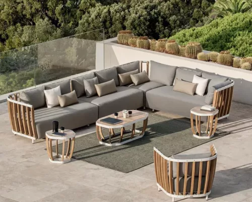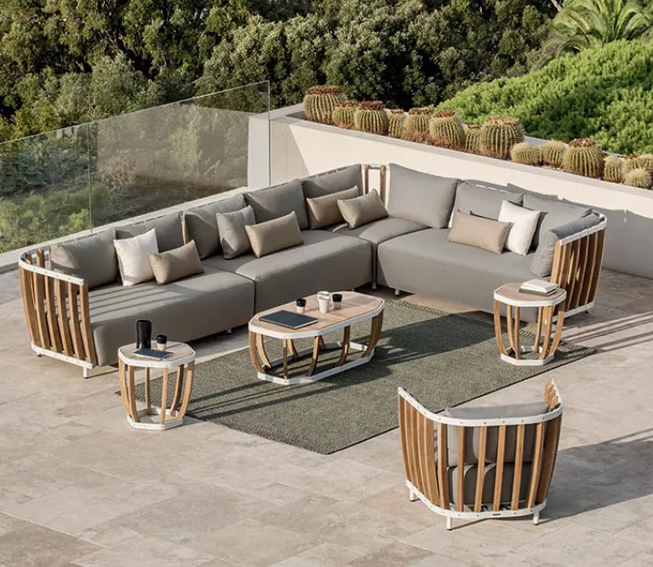 Le canapé modulable Swing permet de créer un salon d'extérieur cosy, raffiné et confortable.