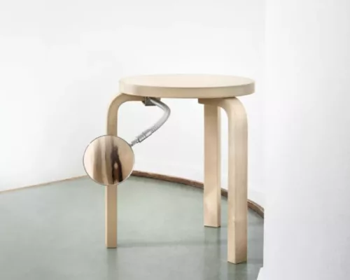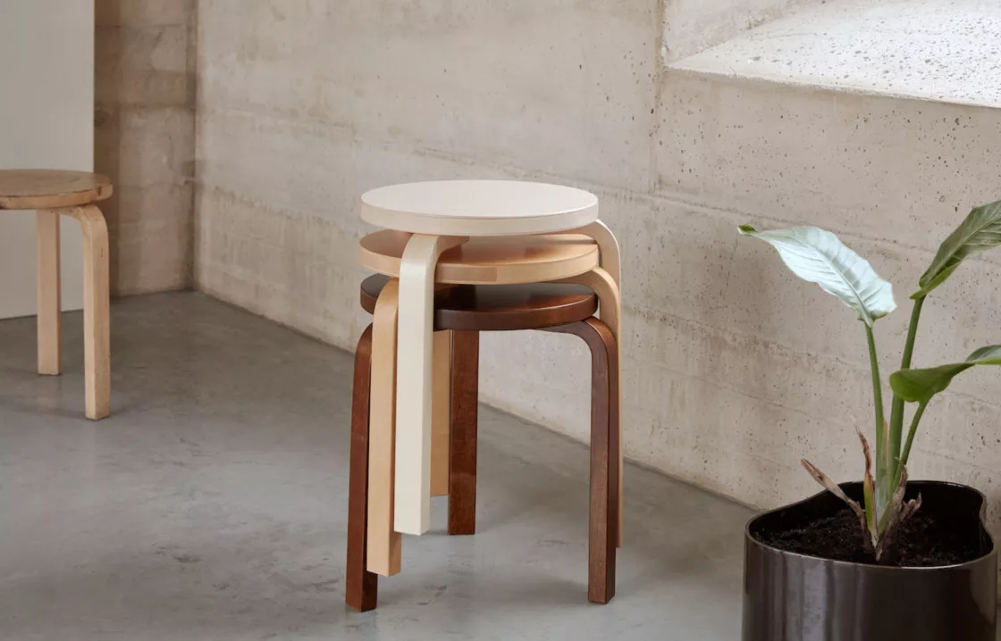 Le tabouret 60 en bouleau sauvage est le résultat d’une collaboration entre le finlandais Artek et le studio de design Formafantasma, basé sur la recherche. Le meuble emblématique, conçu par Alvar Aalto en 1933, a trouvé une nouvelle expression grâce au choix du matériau « bouleau sauvage », où les déviations naturelles du bois telles que les changements de couleur, les traces d’insectes, les nœuds et les marques trouvent leur place. Depuis 2020, Artek et Formafantasma analysent ensemble la chaîne d’approvisionnement d’Artek. Cette collaboration a donné lieu à une nouvelle approche du processus de sélection du bois pour la production, utilisant davantage de matières premières, réduisant ainsi les émissions de carbone. La vision plus large et plus « sauvage » de ce qui peut être utilisé dans la production de meubles a également établi une nouvelle norme pour ce qui est esthétiquement agréable, donnant à chaque produit son propre aspect unique.