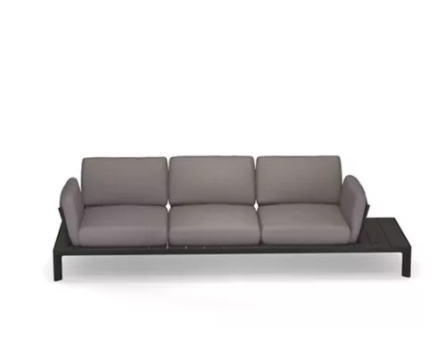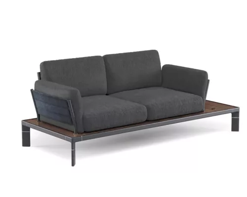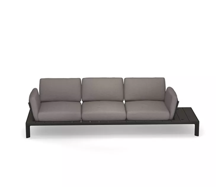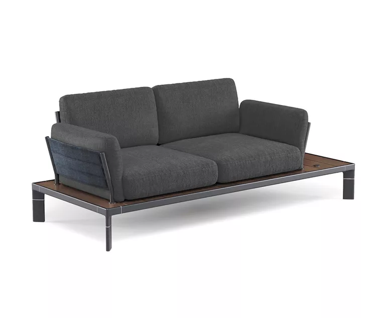 La large plate-forme sert de base au coussin moelleux, elle se prolonge sur le côté afin de servir de table d’appoint.