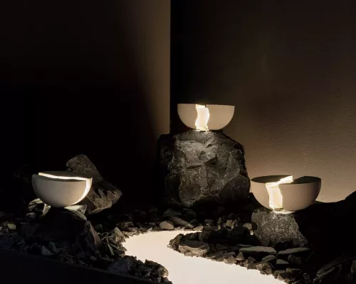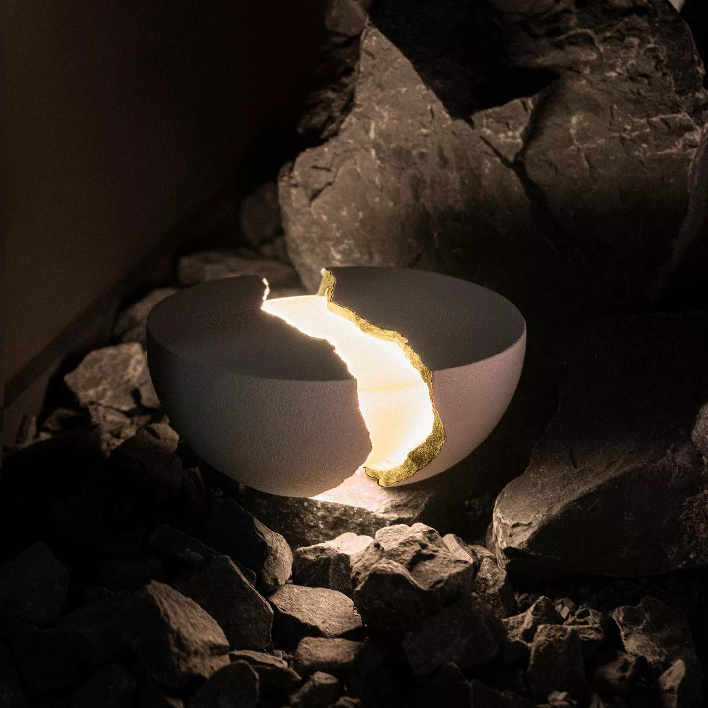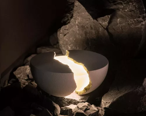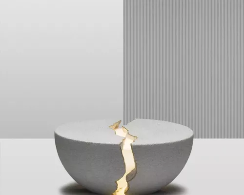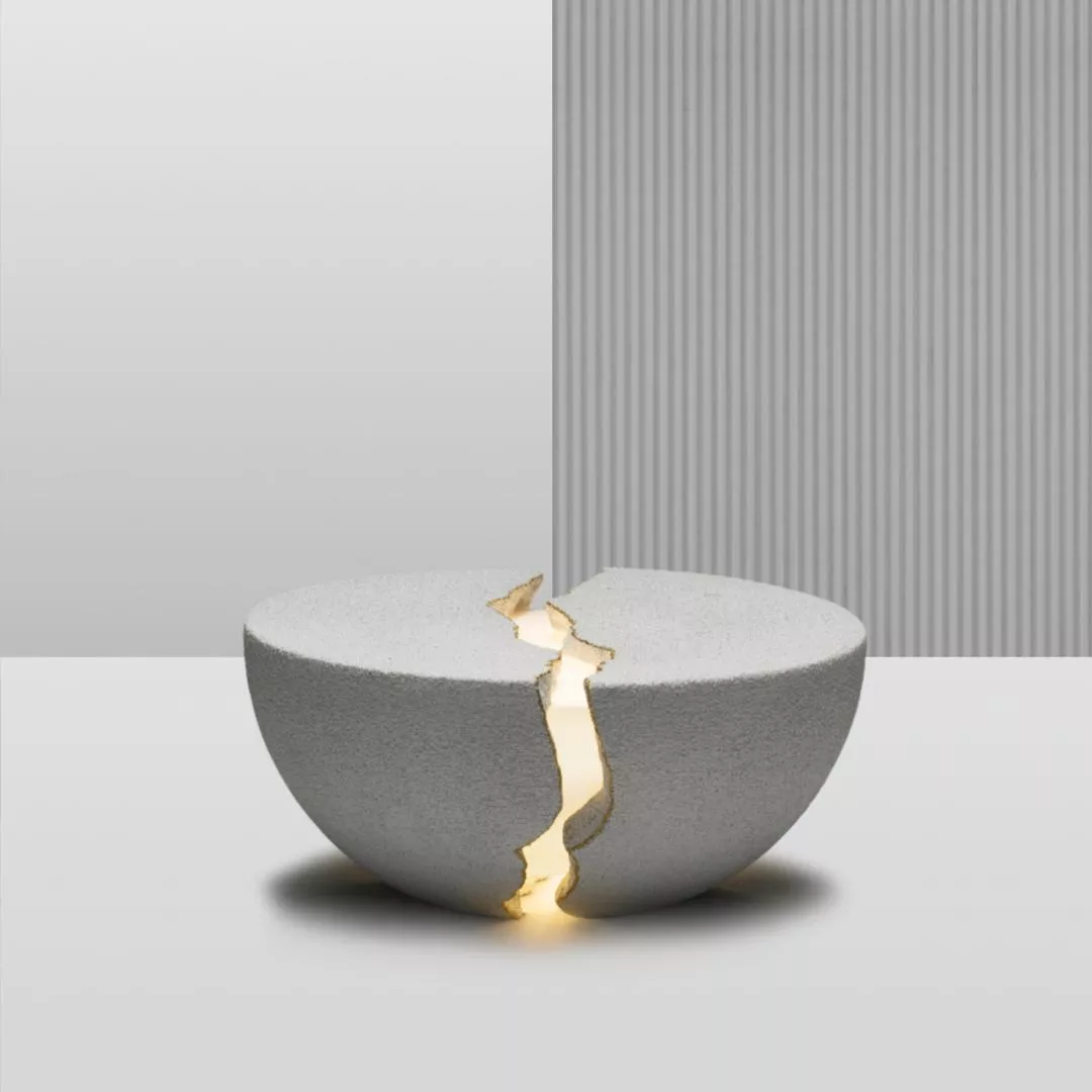 Mais quand vous l’ouvrez en deux, une enceinte puissante et une chaude lumière apparaissent. Inspiré par l’art japonais du « kintsugin« , qui incite à accepter les objets avec leurs imperfections, Teno célèbre la beauté dans l’imperfection.