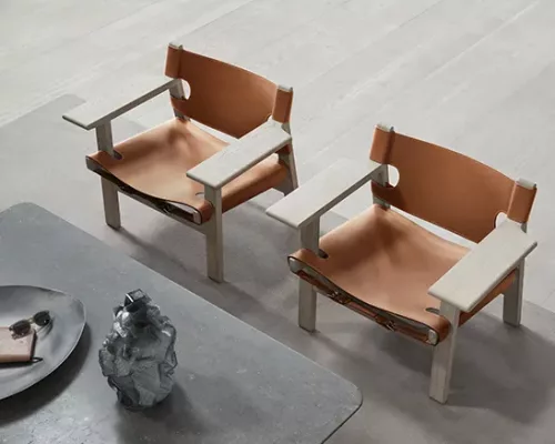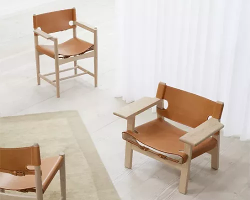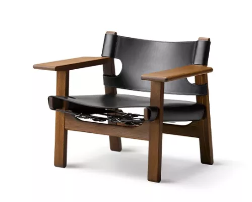 L’Andalousie a été la toile de fond de l’inspiration pour The Spanish Chair. En voyageant à travers l’Espagne, Mogensen a observé une chaise ornée avec de larges accoudoirs, un style traditionnel impliquant la construction de meubles médiévaux espagnols. Mogensen a modernisé le design et a élargi son travail avec du chêne massif et du cuir de selle. Le résultat est l’essence d’une idée exprimée dans un look intemporel en attrait – et original.