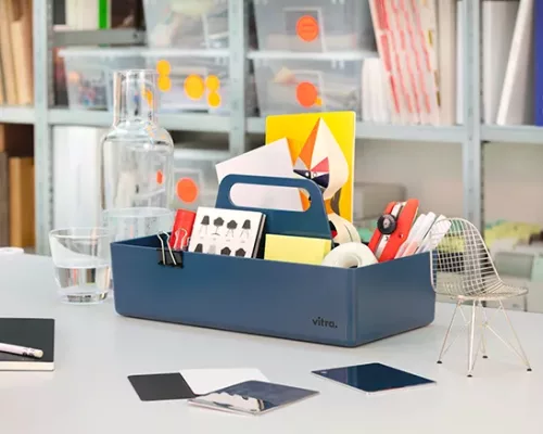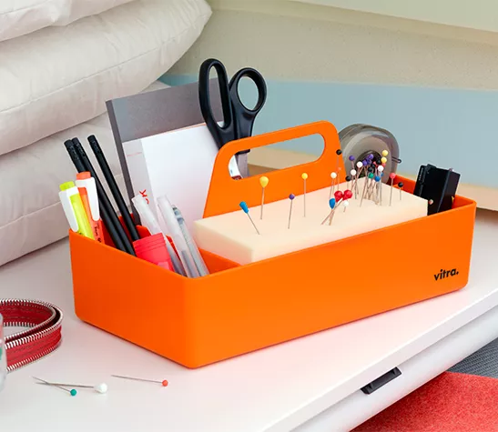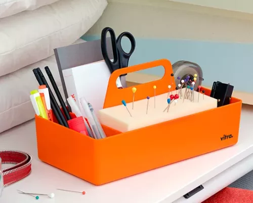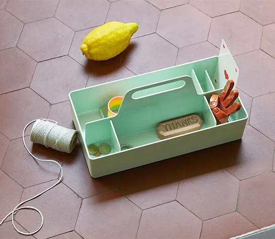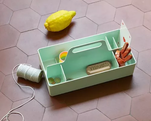 Grâce à sa taille pratique, elle peut être facilement rangée dans une armoire ou sur une étagère, et occupe peu de place sur une table. La Toolbox est disponible dans une palette de coloris.