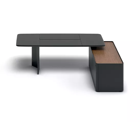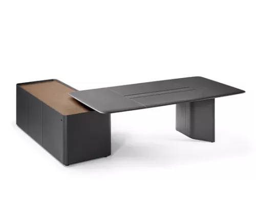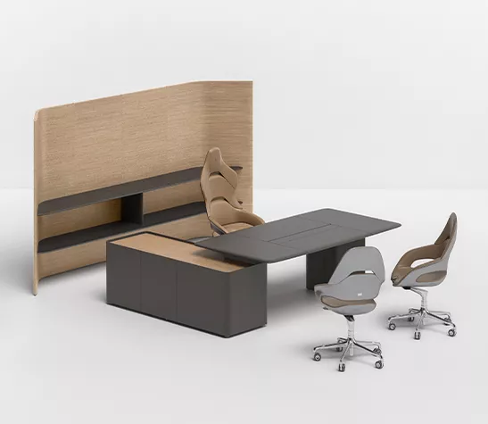 Poltrona Frau présente le système executive office Trust. Des bureaux, des murs autoportants et des conteneurs d’archives conçus par Lievore, Altherr, Park, donnent vie à un tout nouveau concept de bureau. Trust est une collection née d’une recherche approfondie sur l’évolution du travail contemporain. Aujourd’hui, en effet, les rôles sont moins rigides et hiérarchisés, en faveur d’une plus grande horizontalité des relations. La technologie rend de plus en plus minces les frontières entre la maison et le bureau, frontières qui se redéfinissent mutuellement, dans une fluidité de scénarios où il devient nécessaire de pouvoir alterner des oasis de concentration individuelle, des espaces de détente et des espaces de partage et de rencontre.