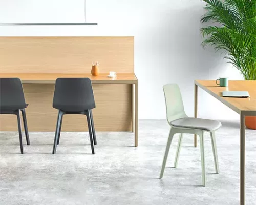 Avec un design raffiné et convivial, les assises Varya vous permettent de meubler différents types d’espaces avec la même famille de sièges, en conservant une esthétique de projet toujours cohérente.