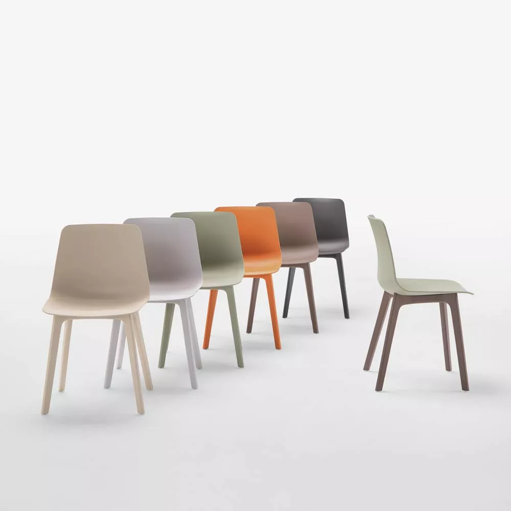 Différentes chaises, fauteuils, tabourets et bancs sont générés en combinant des sièges confortables avec une silhouette élégante et une large gamme de piètements. La grande variété de combinaisons, ainsi que la large gamme de finitions disponibles, permettent des possibilités de personnalisation infinies sans altérer le caractère unique et l’esprit intemporel de cette famille de sièges conviviale et originale conçue pour habiter la gamme la plus personnalisation d’environnements et de contextes.