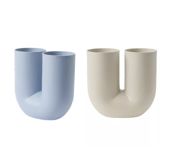 Avec sa double ouverture, le vase Kink ajoute un sentiment sculptural à la pièce, même lorsqu'il n'est pas utilisé. Le design est réalisé en porcelaine émaillée à l'intérieur pour une touche raffinée. "Kink était une exploration de la manière dont de nouvelles formes pouvaient être créées par la manipulation numérique de formes simples. Le design combine l'appréciation de la technologie moderne avec l'artisanat traditionnel de la céramique. Le résultat est une pièce à la fois contemporaine et sculpturale."
