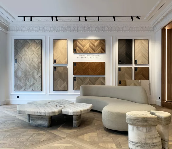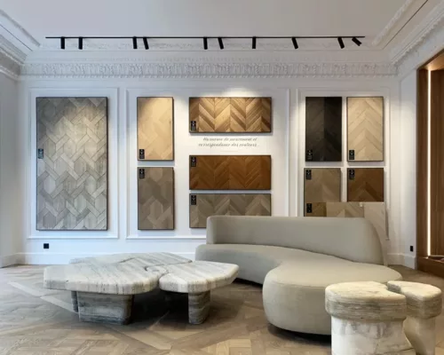 Conçu par l’architecte d’intérieur Michel Amar, cette collection s’inspira des bas-reliefs traditionnels, en utilisant des matériaux bruts tels que le travertin et la pierre naturel.