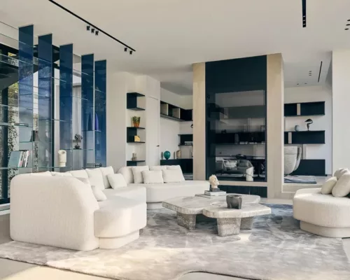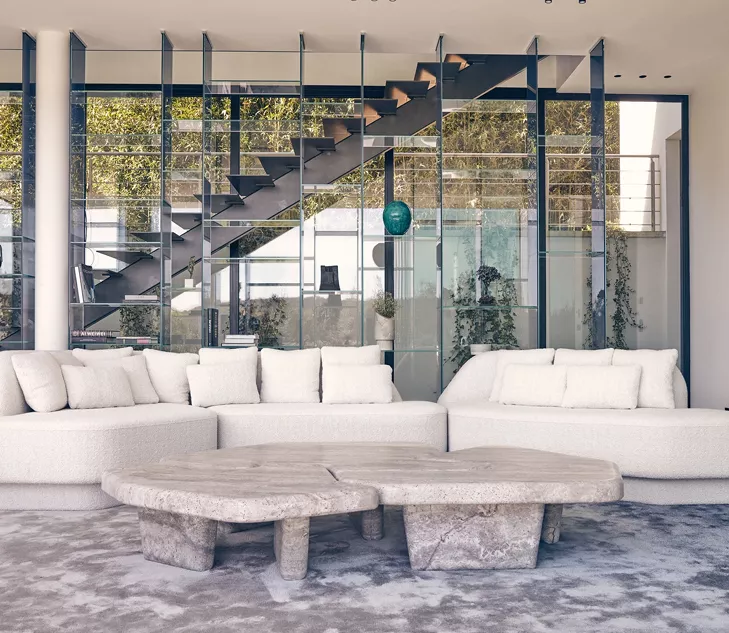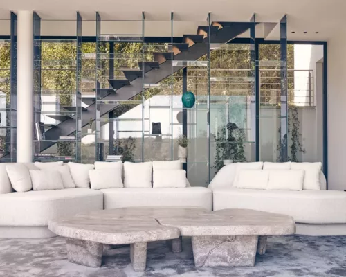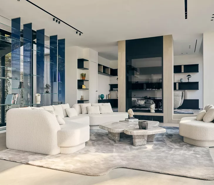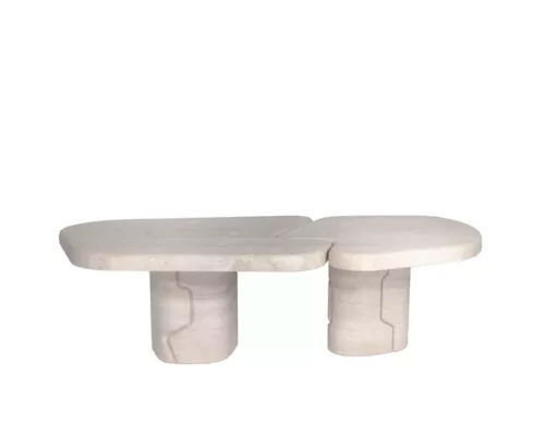 Par l’architecte et designer Michel Amar. Cette collection incarne un esprit intemporel en utilisant des matériaux bruts tels que le travertin et la pierre naturelle pour créer un équilibre entre la lumière et le volume.