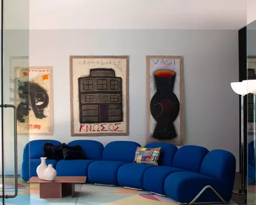 Le duo de designers libanais David&Nicolas est à l’origine de ce système modulaire composé de fauteuils, de canapés d’angle, de chaises longues et d’ottomans offrant un confort luxueux. Un cadre porteur tubulaire – disponible en chrome poli, chrome noir mat et laque noire – sert de base au produit, lui donnant un aspect flottant et créant une sorte de couronne à l’arrière.