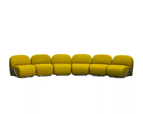 La collection Victoria Tacchini comprend différents modules qui permettent de créer un nombre infini de compositions. Une structure tubulaire sert de base au siège, lui donnant une apparence flottante et créant une sorte de couronne à l’arrière du canapé. Grâce à sa nature modulaire, Victoria peut être arrangé et reconfiguré à volonté, en fonction de l’espace où il est placé. Cette caractéristique le rend particulièrement adapté à une utilisation dans le secteur des collectivités.