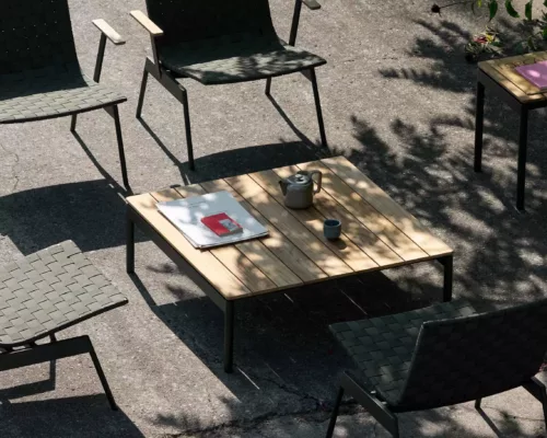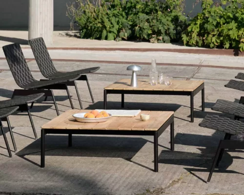 La table basse Ville reflète l’élégance du design scandinave, apportant une touche raffinée au mobilier d’extérieur.
