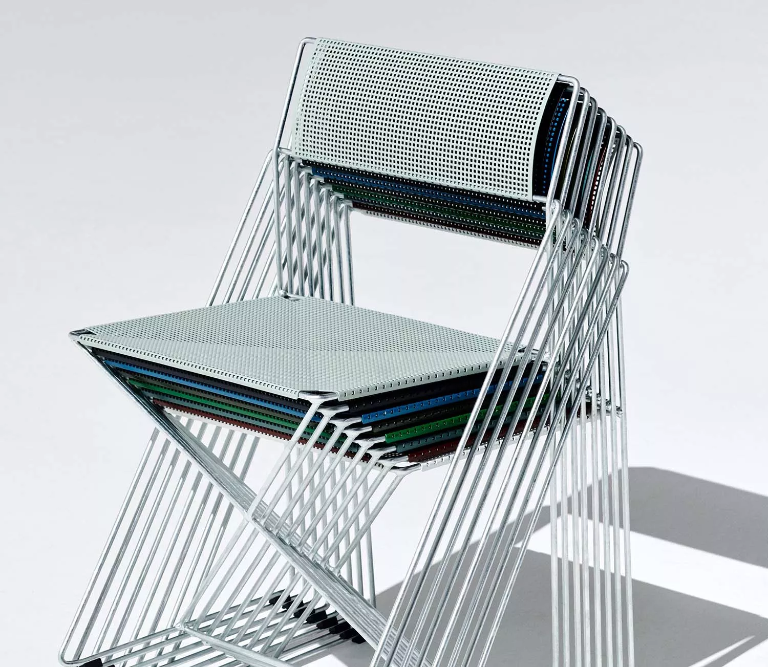Conçue à la fin des années 1970 par Niels Jørgen Haugesen, la chaise X-Line est un exemple emblématique du mouvement high-tech de cette époque. Son expression industrielle, alliée à une conception en acier de haute précision, lui confère une esthétique minimaliste et intemporelle.