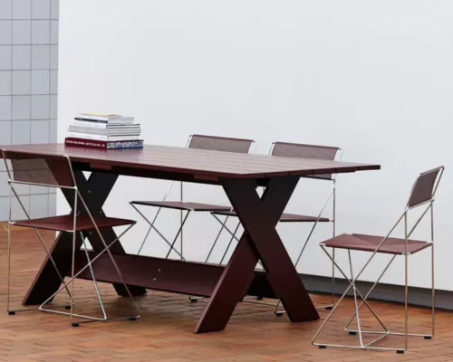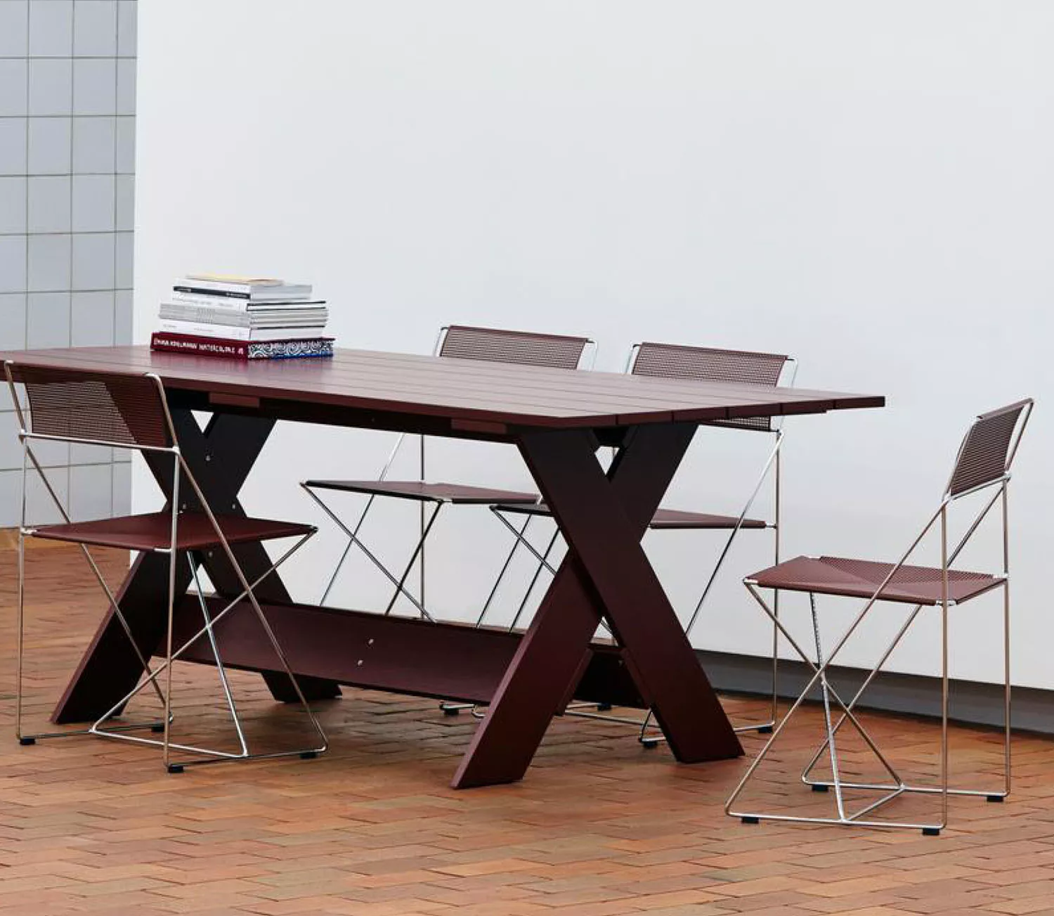 Rééditée par HAY, la X-Line conserve son piètement en X distinctif, signature de son design, qui lui apporte stabilité et légèreté. Son structure en fil métallique fin lui permet de s’intégrer avec élégance aussi bien dans un intérieur contemporain que sur une terrasse moderne.