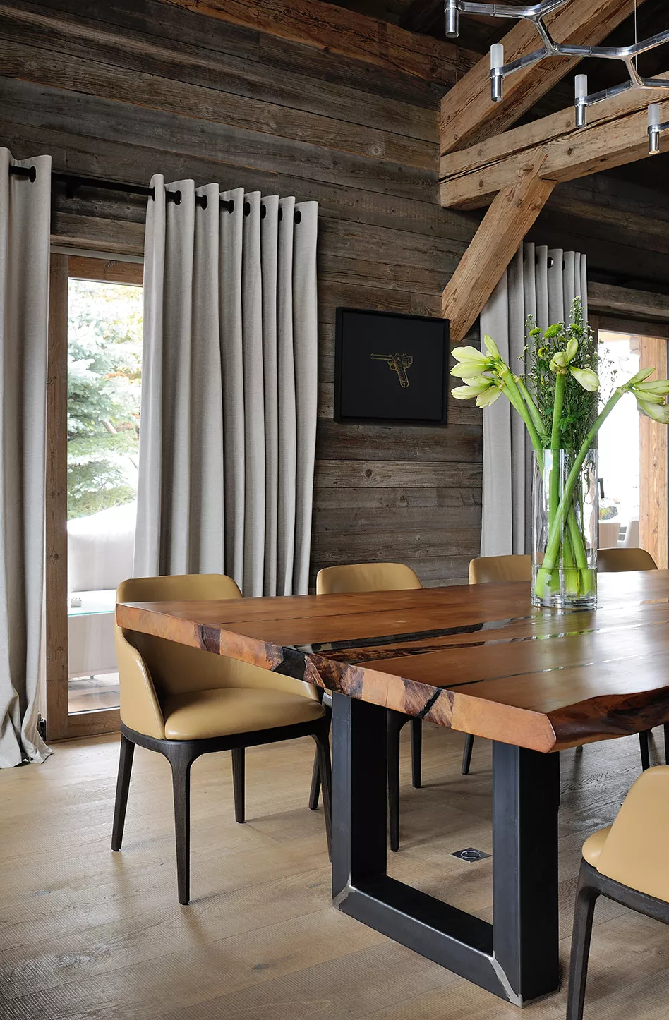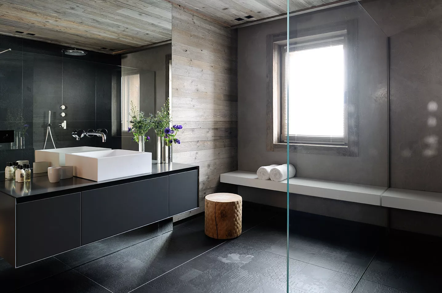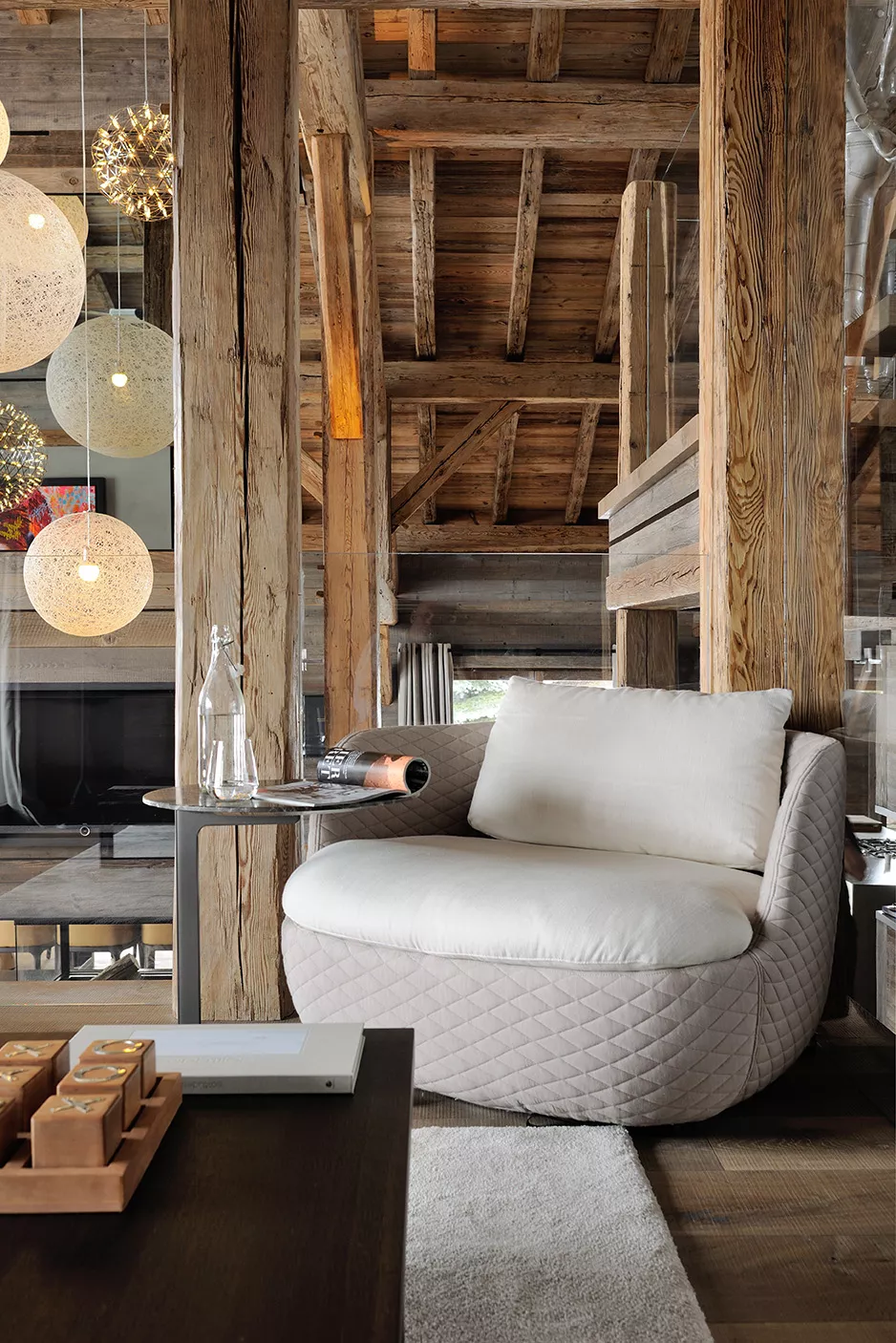 Rénovation d’un chalet privé par l’agence Damien Carreres. Marques prescrites : Moooi, Poliform, Bocci, Riva 1920… Crédit photos Studio Erick Saillet