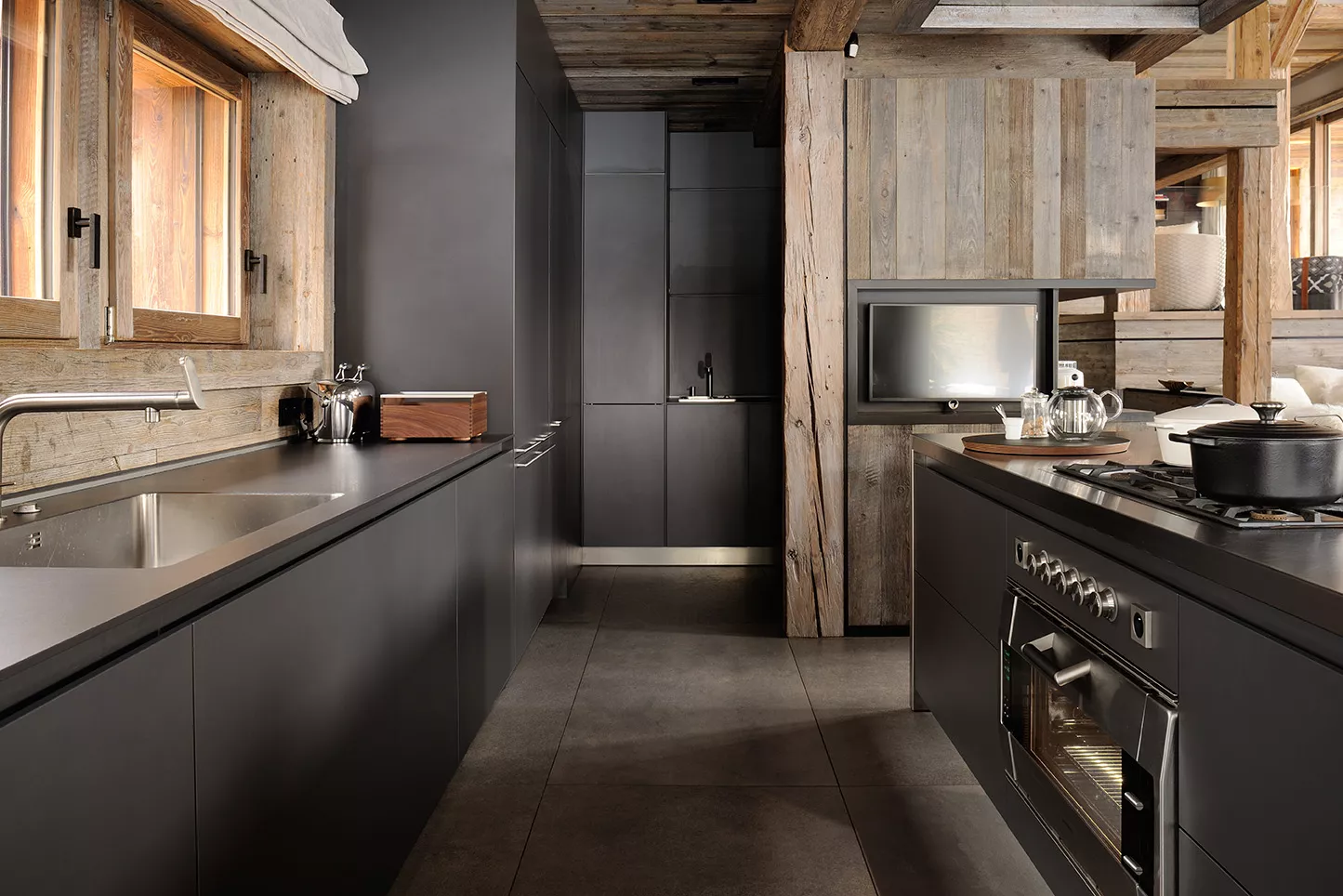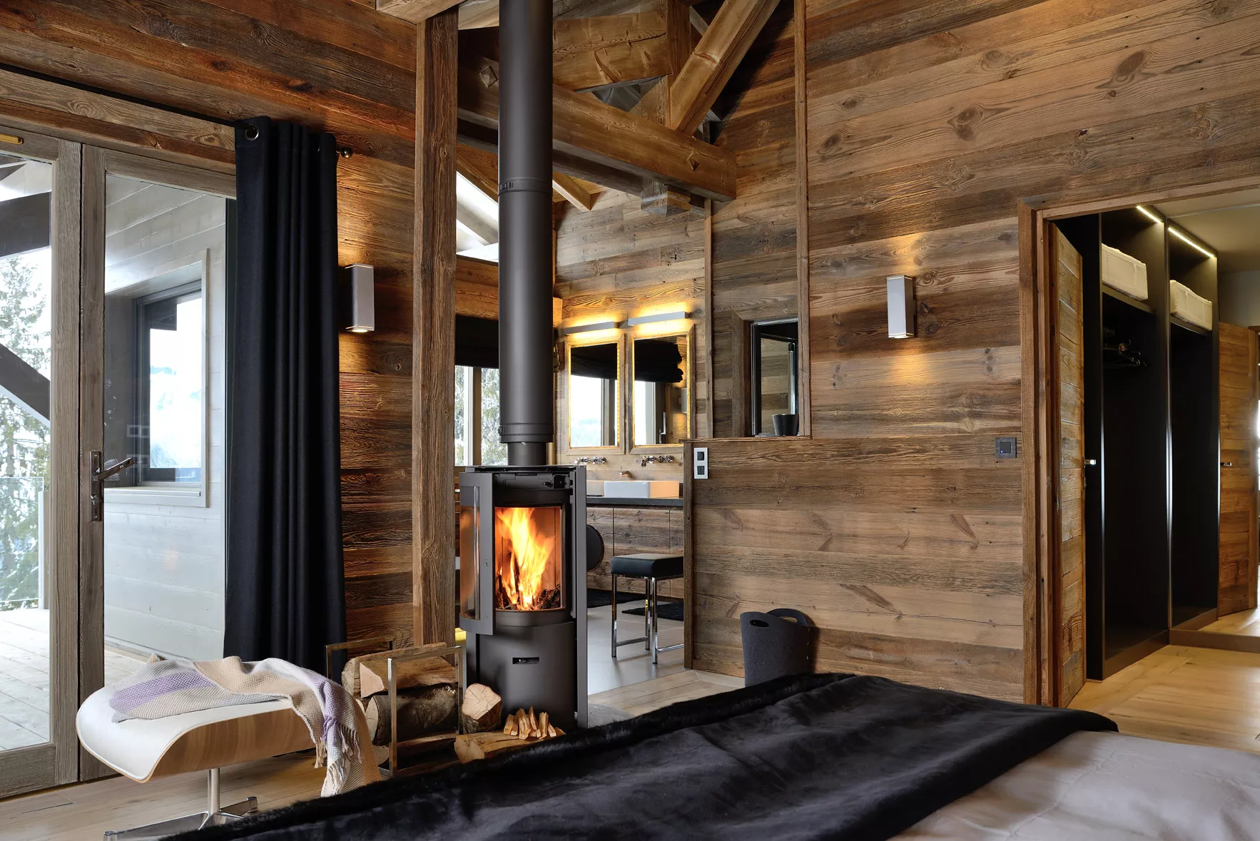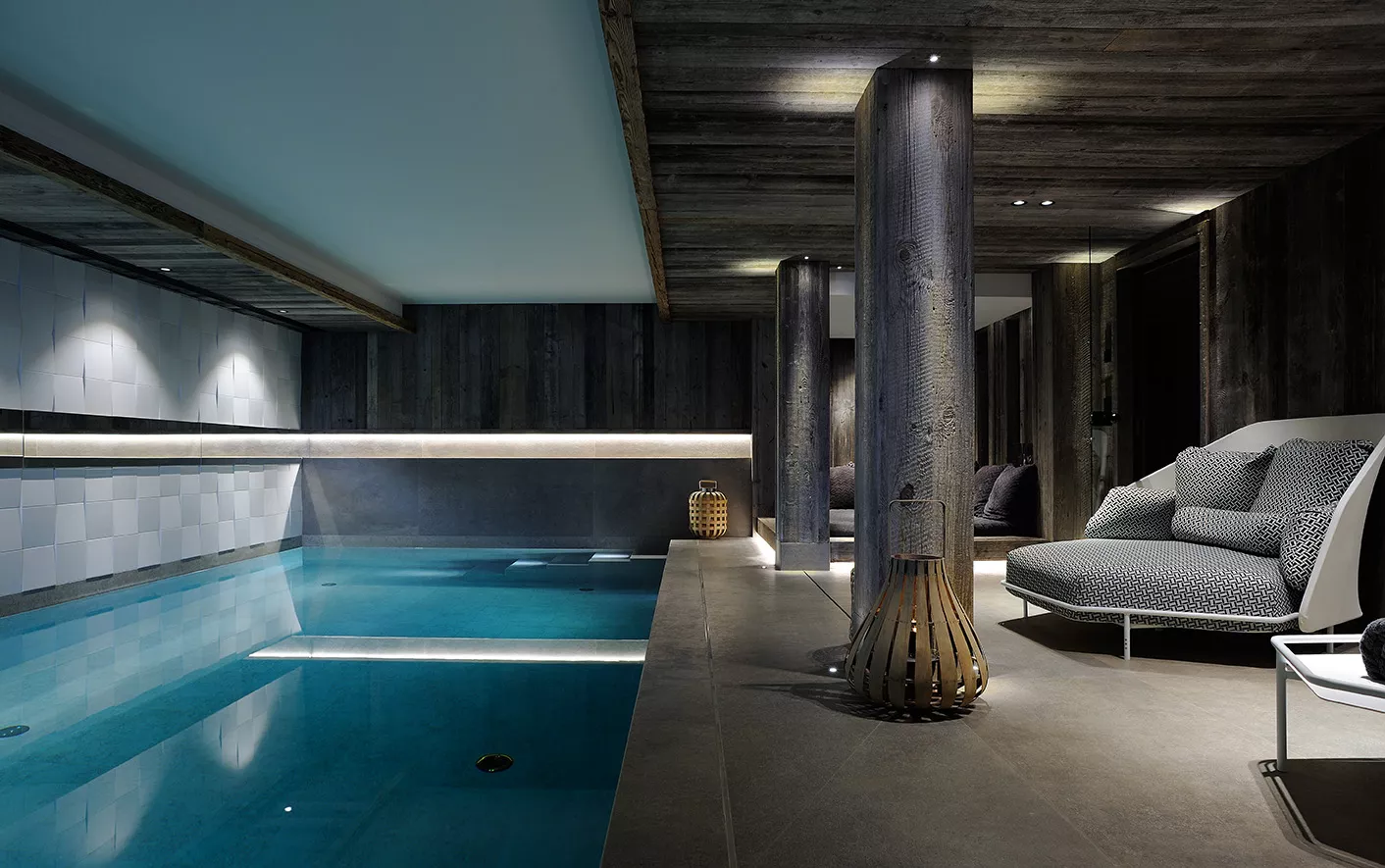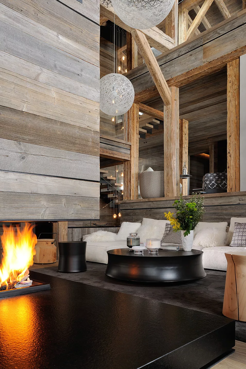 Rénovation d’un chalet privé par l’agence Damien Carreres. Marques prescrites : Moooi, Poliform, Bocci, Riva 1920… Crédit photos Studio Erick Saillet