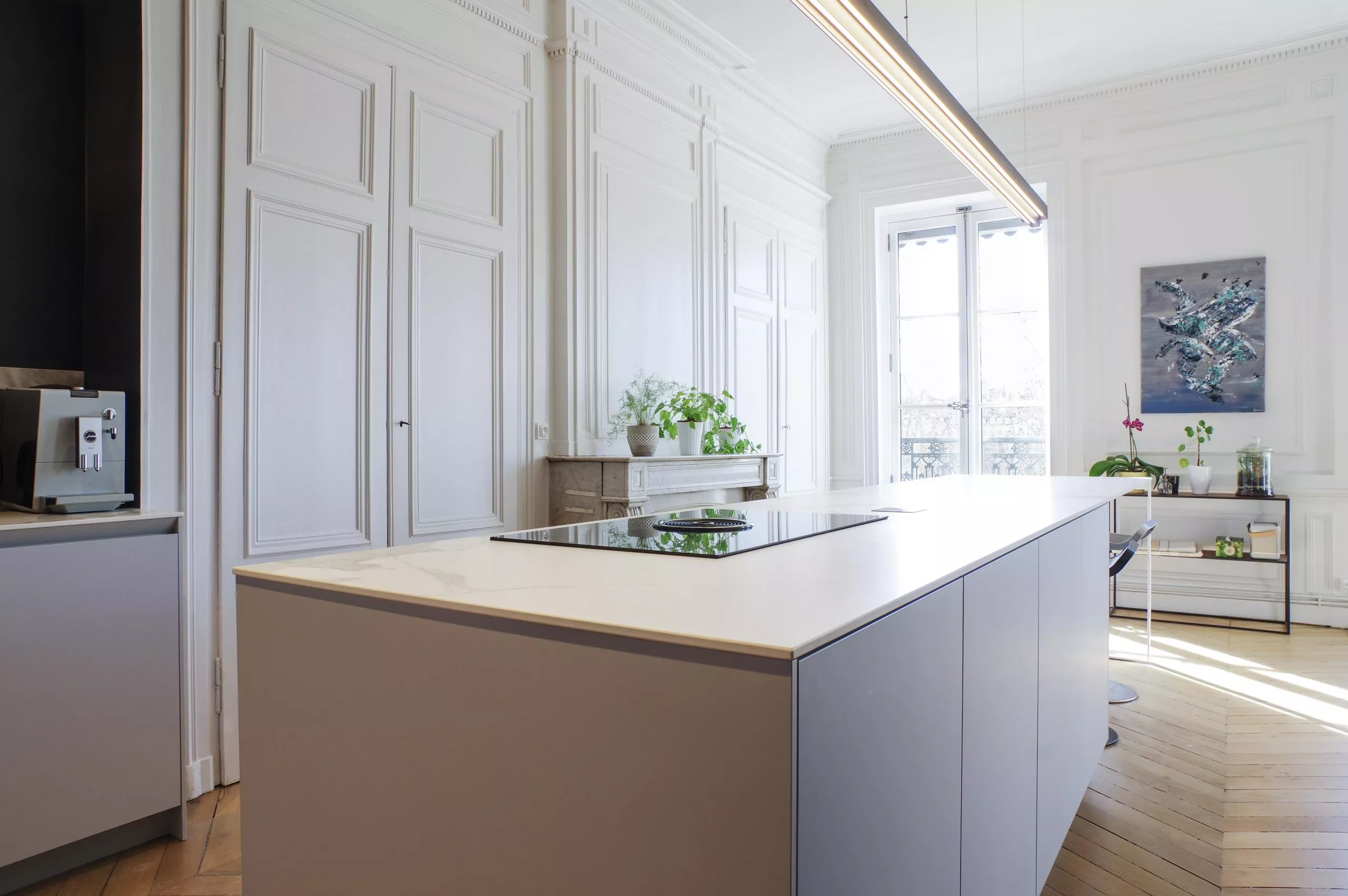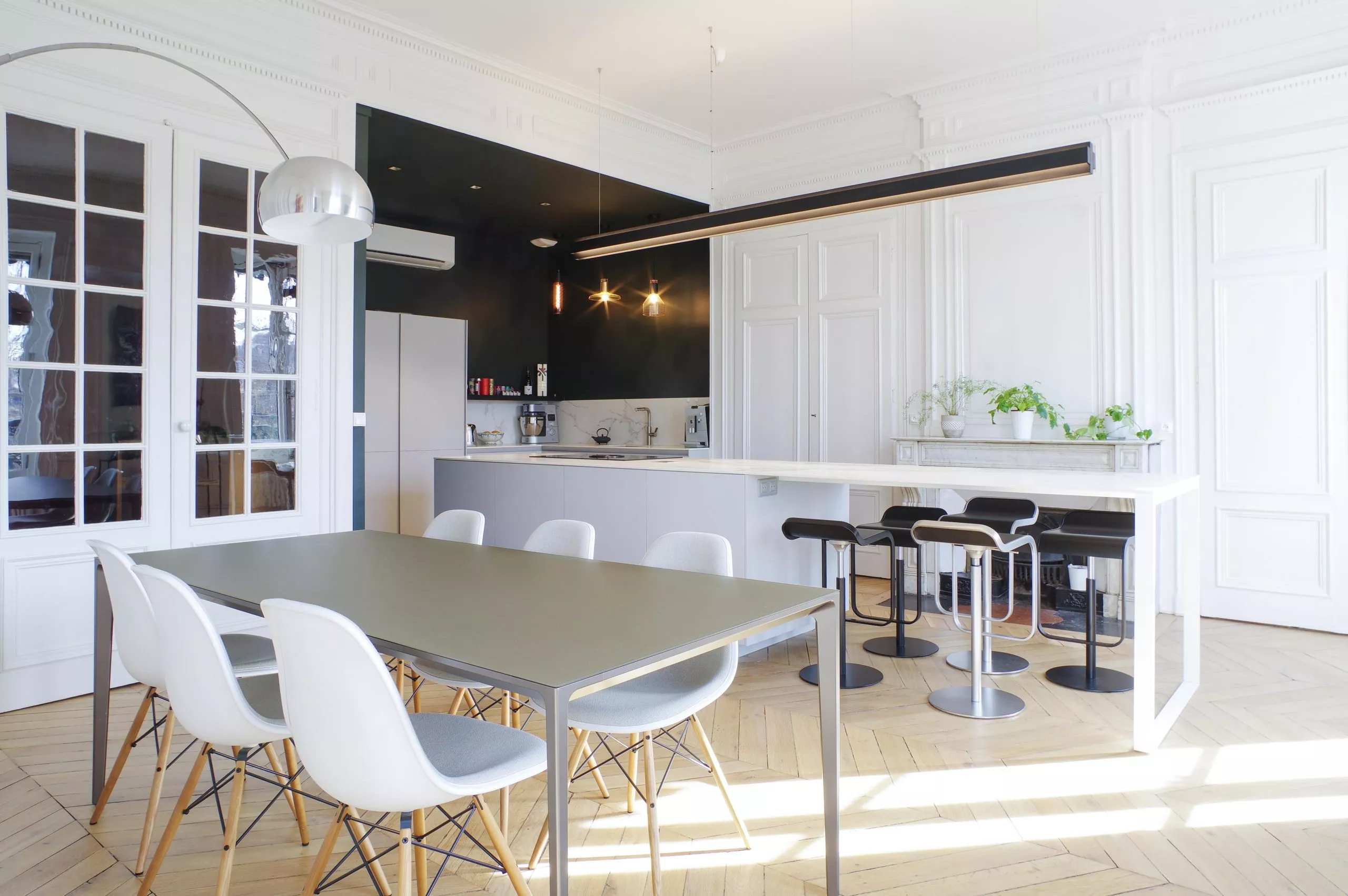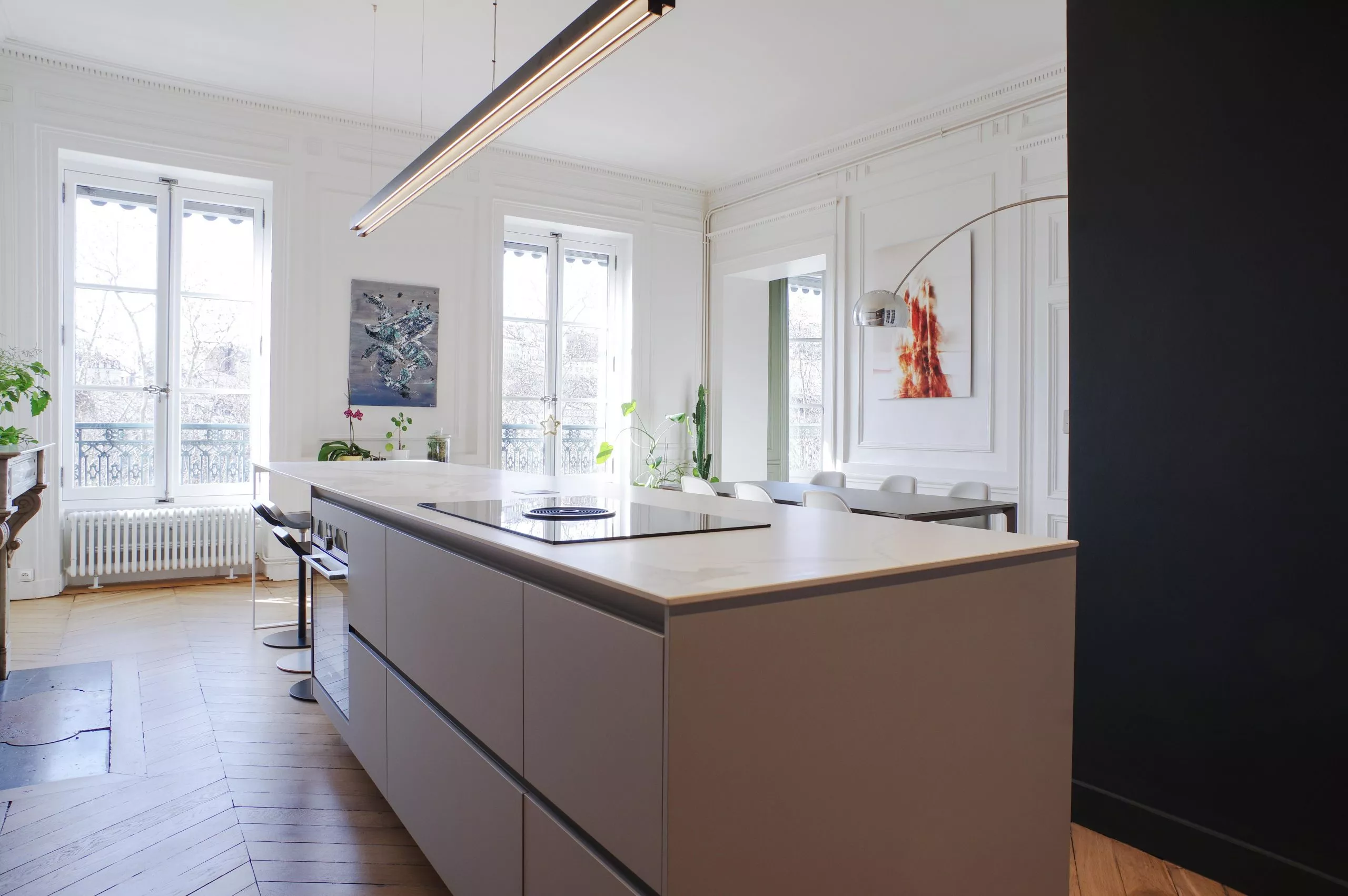Pour cet appartement de type haussmannien, c'est le modèle "Twelve" de chez Poliform qui a été retenu.