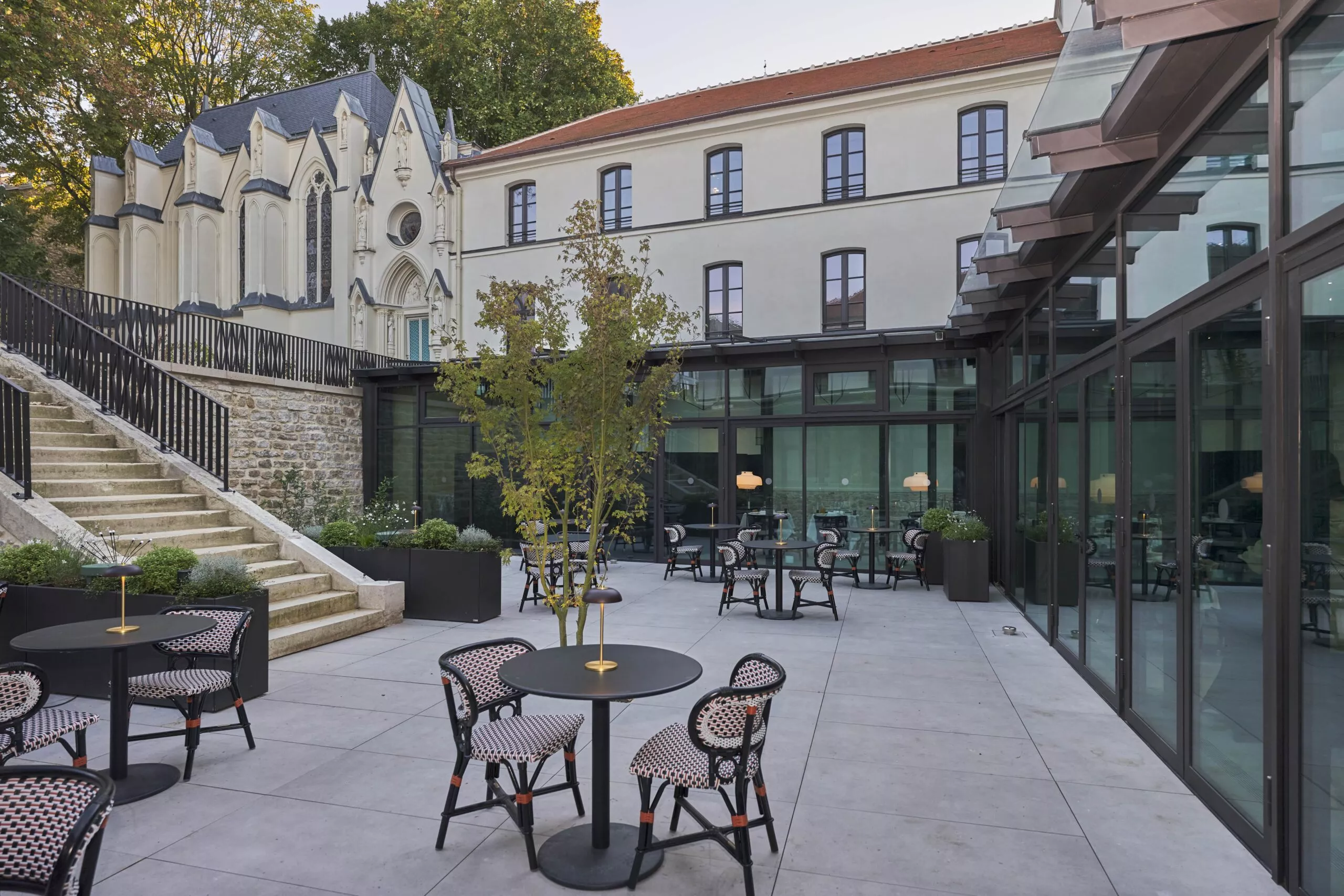 Il abrite un hôtel et spa conçu par Wilmotte & Associés Architectes, ainsi qu’un bar à rhum discret installé dans une chapelle et une table gastronomique offrant une vue sur le potager.