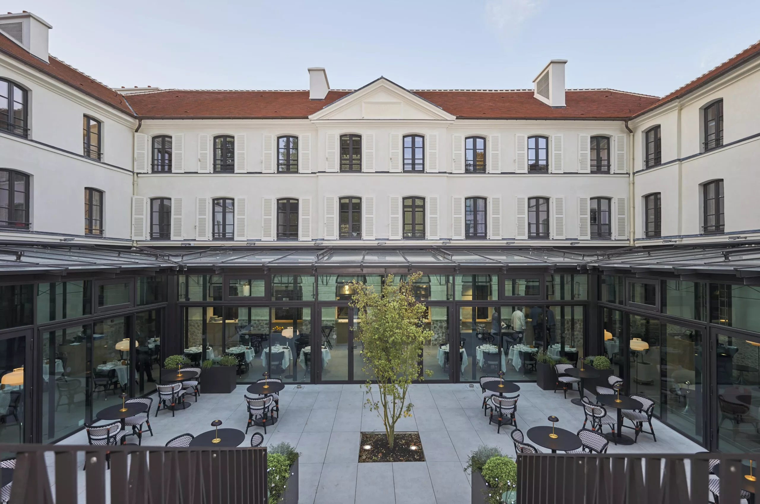 Au total, 72 chambres et suites sont réparties sur 3 étages de ce nouveau bâtiment avec pour chaque niveau, une tonalité. Celles en rez-de-chaussée disposent chacune d’une petite terrasse privative ouverte sur le jardin, et pour celles au dernier étage des balcons surplombant l’environnement naturel et offrant des vues sur Paris.